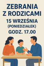 Serdecznie zapraszamy na zebranie z rodzicami, które odbędzie się w naszej szkole 15 września (poniedziałek) o godzinie 17.00.